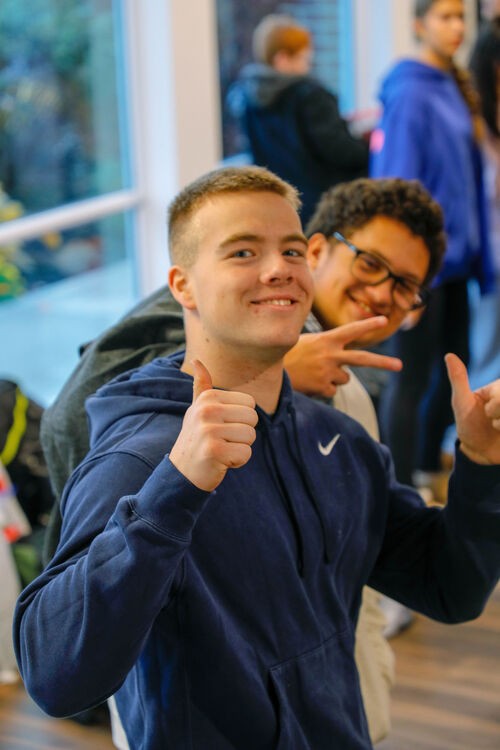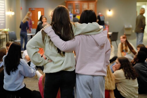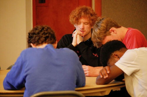 The high schoolers meet together in the main room while middle school meets in the Fishbowl.