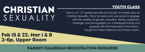 6th-12th graders meet on Sunday morning from 11am-12:15 PM in the Upper Room.